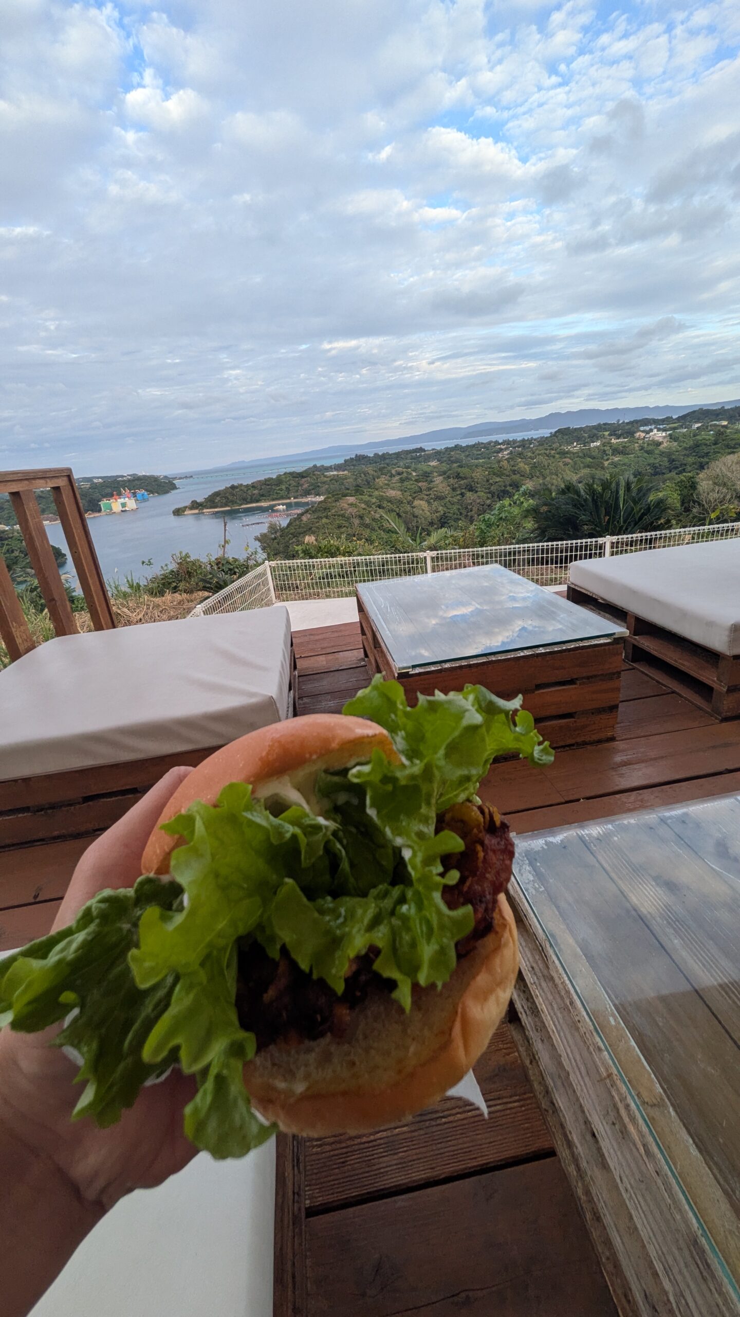 今帰仁村の食材もとりいれつつ沖縄を感じる食材を使用した「NAKIJIN BURGER」を味わえます。絶景ロケーションをみながら、ほおばって。テイクアウト専門のお店です。
