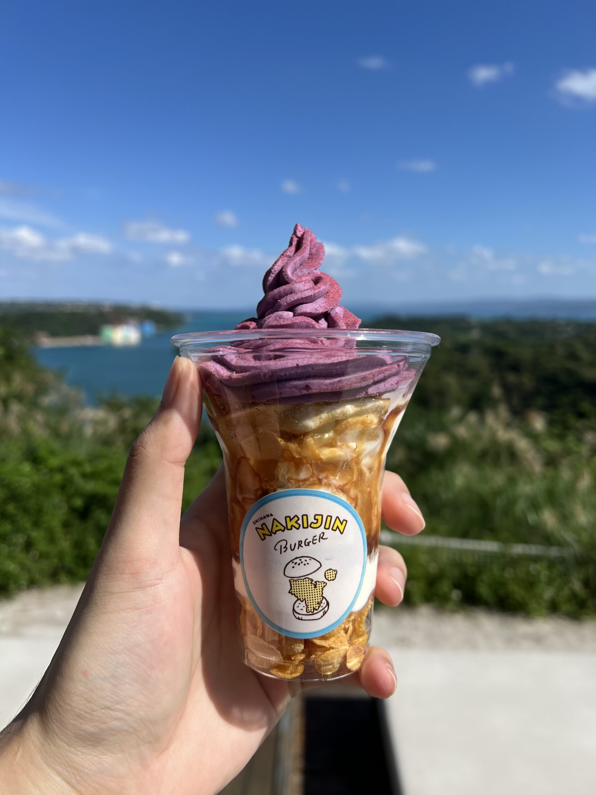 カップの表面にはカラフルなレイヤーが見えて、テラスの景色にも映える可愛さです😍