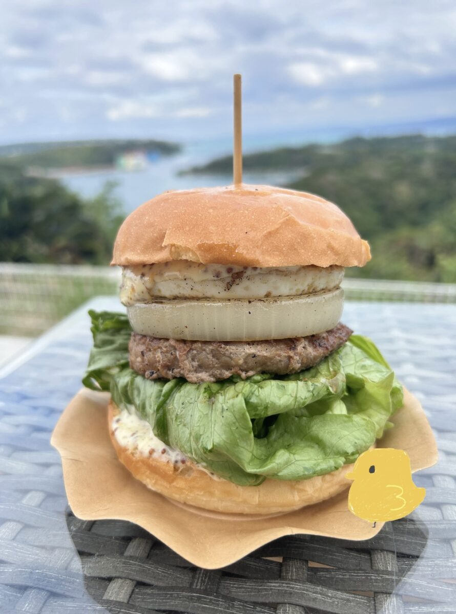 そんなひよこ豆にマヨネーズやコンソメなどを加え、ミキサーにかけペースト状にした物を「ポーク・タマゴバーガー」のバンズの上にたっぷりのせています🐣‪