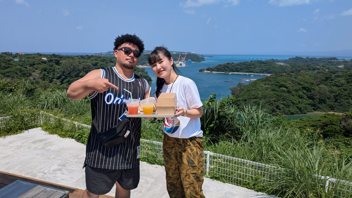 沖縄県今帰仁村で、古宇利島を一望できる絶景スポット、DRIVE IN リカリカワルミでは、沖縄らしさを感じられるハンバーガーや爽やかなドリンク、県内各地からセレクトしたお土産を販売しています✨