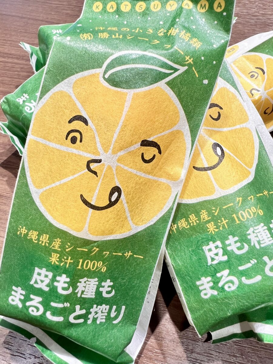 その中からお一つ、『皮も種もまるごと搾りシークヮーサー』は、沖縄県北部地域やんばるで栽培されたシークヮーサーを果肉果皮と種をまるごとローラーで押しつぶして搾った果汁。
